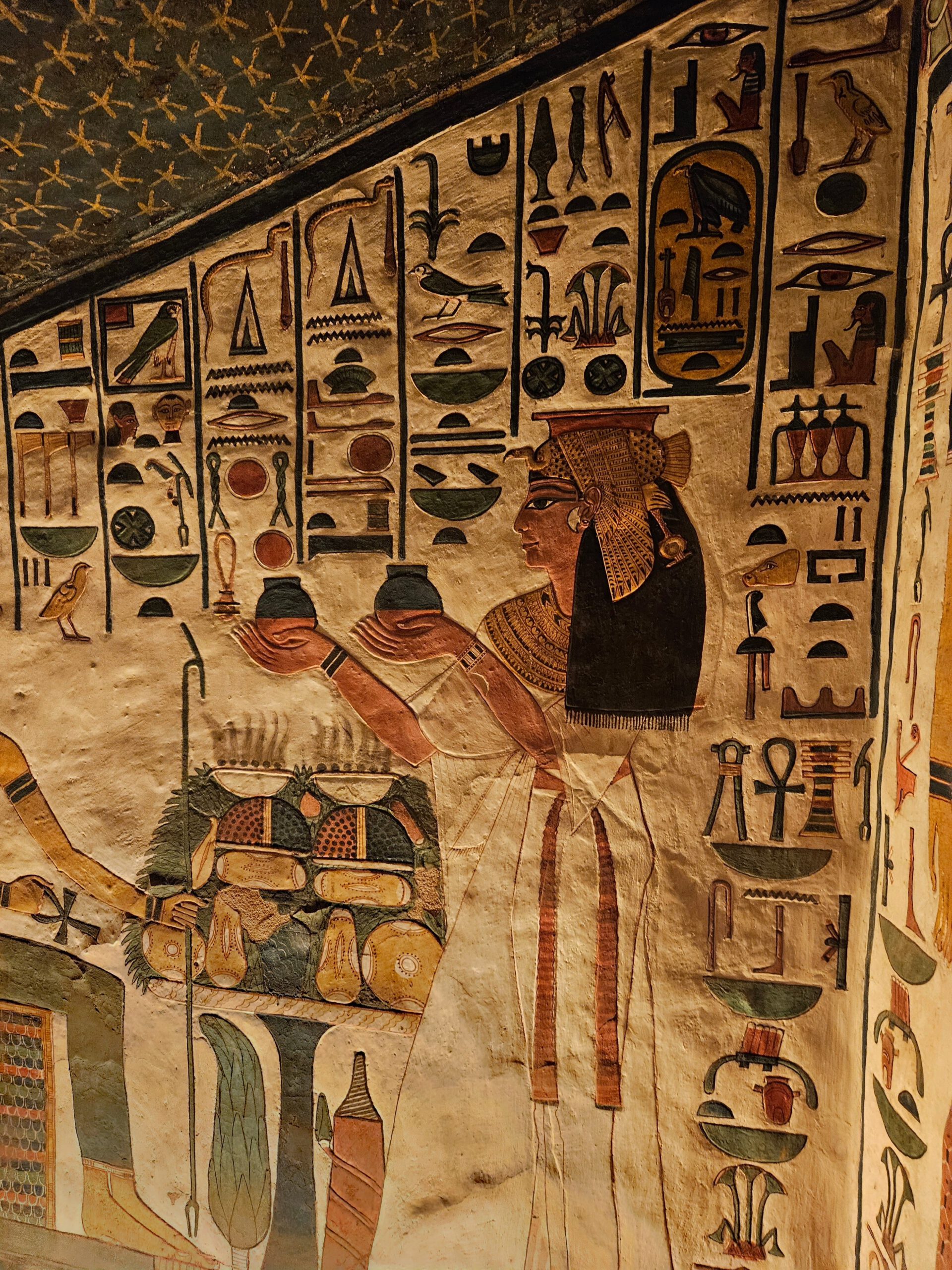 Im Tal der Königinnen gibt es zahlreiche Gräber, die für ihre prächtigen Wandmalereien und ihre geschichtliche Bedeutung bekannt sind. Auch das Grab des Prinzen Amun-her-Chepeschef, Sohn von Ramses III, und natürlich das von Nefertari, Gemahlin von Ramses II, sind wichtige Stationen in diesem Tal.